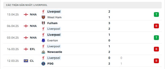 - Phong độ Liverpool