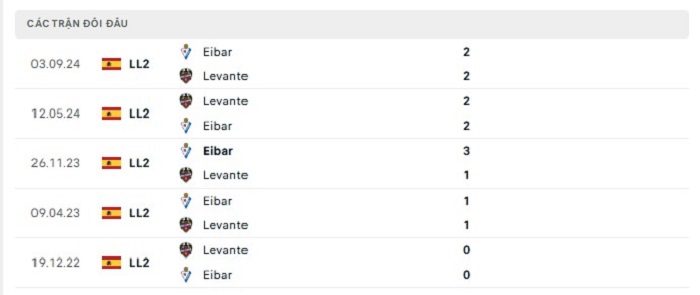 Trong quá khứ các trận gặp nhau giữa Levante và Eibar có tỷ lệ ghi bàn tương đối cao, cụ thể cả 3 lần gặp nhau gần nhất của hai đội đều đã xuất hiện từ 3 bàn thắng ghi được trở lên trong trận. Mùa này với Levante dù dẫn đầu bảng xếp hạng và có được hàng công thi đấu tốt nhưng hàng thủ của họ cũng không thực sự chắc chắn, bởi vậy mà trận đấu cuối cùng của hai đội ở mùa giải năm nay hoàn toàn có thể tiếp tục xuất hiện tỷ số cao ghi được trong trận.