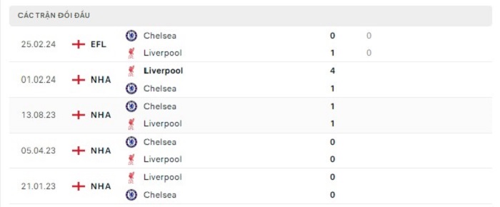 Bảng  bóng đá trận đấu Liverpool vs Chelsea
