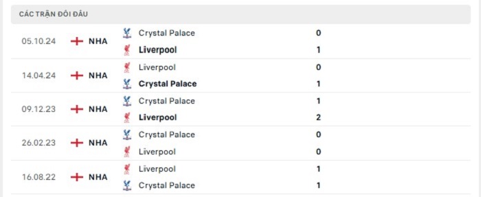 Phong độ gần đây Liverpool vs Crystal Palace