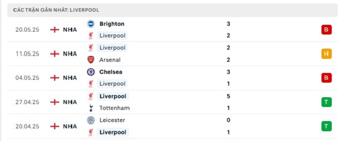 - Phong độ Liverpool