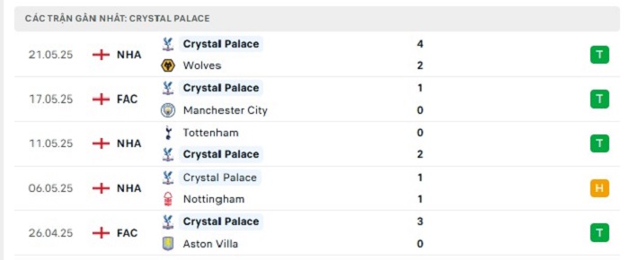- Phong độ Crystal Palace