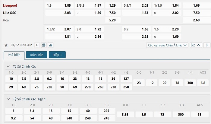 Soi kèo tỷ số Liverpool vs Lille