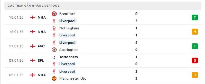 - Phong độ Liverpool
