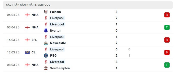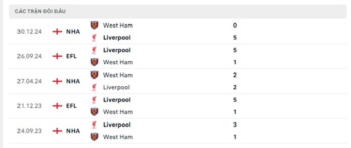 - Dự đoán tỉ số trận đấuLiverpool vs West Ham