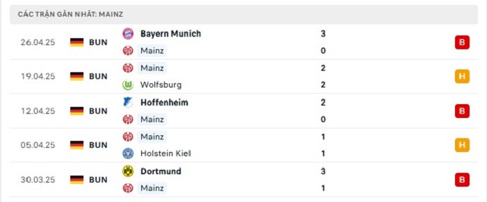 • Phong độ Mainz