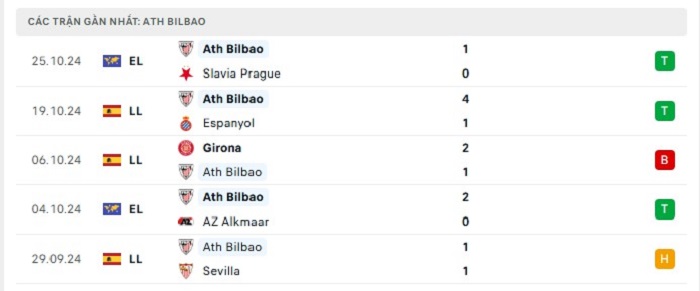 • Phong độ Athletic Bilbao