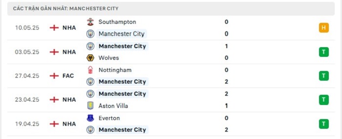 - Phong độ Manchester City