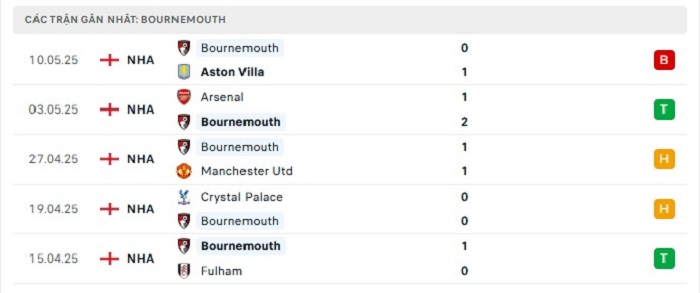 - Phong độ Bournemouth