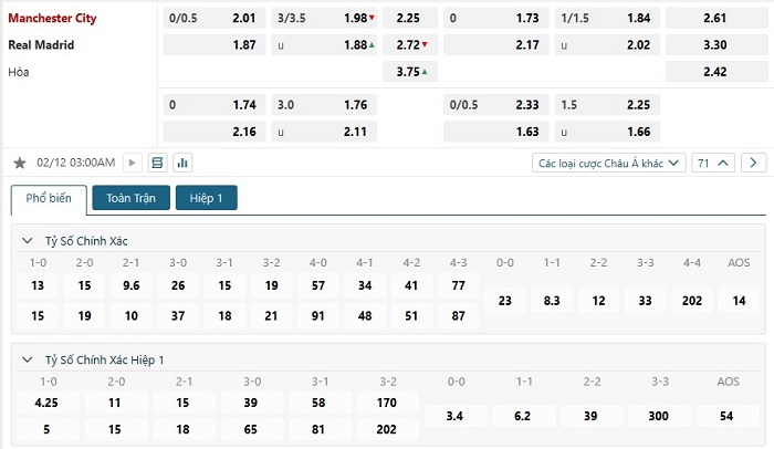 Soi kèo tỷ số Manchester City vs Real Madrid