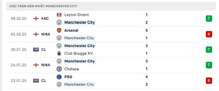 - Phong độ Manchester City