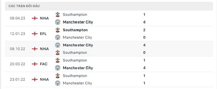 Thành tích trong quá khứ giữa Manchester City và Southampton cũng có sự chênh lệch đáng kển, Manchester City có được 6 chiến thắng theo mốc kèo châu Âu cả trận trong 10 lần gặp nhau gần đây của hai đội. Ở mùa giải năm nay sau 8 vòng đấu của mình thì Southampton đã nhận tới 7 thất bại trong khi chỉ hoà 1 theo kèo châu Âu, với phong độ như hiện tại của mình thì Southampton sẽ khó có thể tránh khỏi một thất bại tiếp theo trước sức mạnh vượt trội của Manchester City.