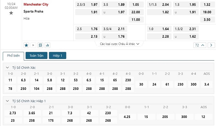 Soi kèo châu Á, kèo chấp Manchester City vs Sparta Praha