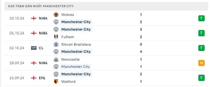 - Phong độ Manchester City