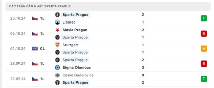 - Phong độ Sparta Praha