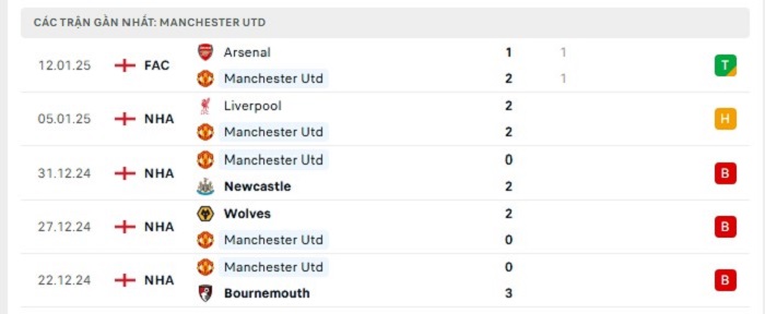 Phong độ gần đây Manchester United vs Brighton