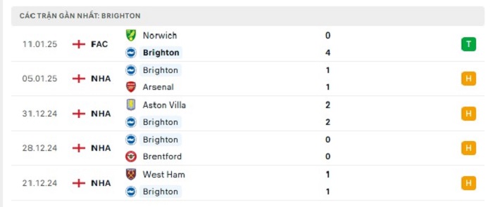 • Phong độ Brighton