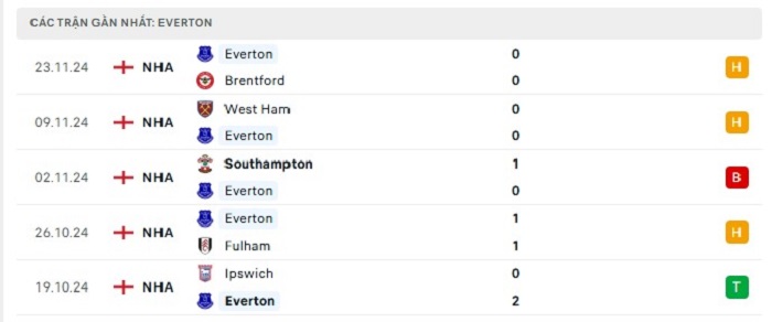 Bảng bóng đá trận đấu Manchester United vs Everton