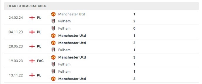 Các trận đối đầu gần đây giữa Manchester United và Fulham có tỷ lệ ghi bàn rất tốt khi thi đấu trên sân nhà của Quỷ đỏ, điều này cũng có thể nhận thấy được khi 7 trong 8 trận gặp nhau gần nhất của hai đội đã có được từ 3 bàn thắng ghi được trở lên, điều đáng nói là trong cả 8 chuyến làm khách đó Fulham đều có được ít nhất 1 bàn thắng vào lưới Manchester United cho thấy khả năng ghi bàn của họ là không hề tồi, vì vậy mà tỷ số trận đấu của hai đội cũng sẽ được kỳ vọng xuất hiện nhiều trong trận.