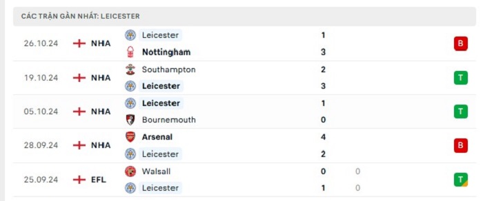Bảng bóng đá trận đấu Manchester United vs Leicester City