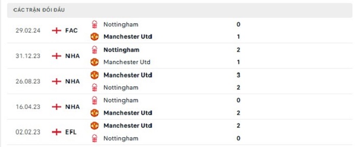 Bảng bóng đá trận đấu Manchester United vs Nottingham