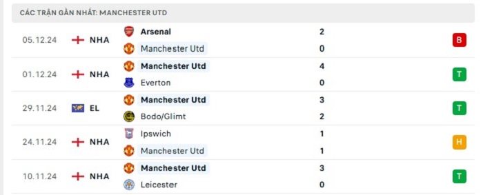 Phong độ gần đây Manchester United vs Nottingham