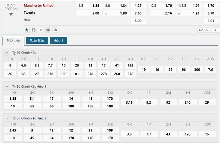 Như đã nói thì hàng công Manchester United tại mùa giải năm nay đang gặp rất nhiều khó khăn tại mùa giải, bằng chúng là tại Ngoại hạng Anh mùa này Manchester United cũng mới chỉ ghi được 5 bàn thắng qua 5 trận đấu của mình. Bên phía Twente họ đang thể hiện hàng thủ thi đấu khá chắc chắn ở thời điểm hiện nay sẽ tạo nên những khó khăn cho Manchester United, vì vậy mà tỷ số trận đấu sắp tới của hai đội sẽ khó có thể xuất hiện nhiều trong trận.