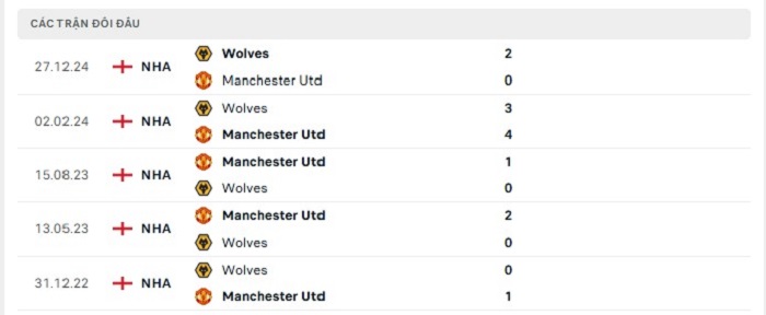 Lịch sử đối đầu của Manchester United vs Wolverhampton