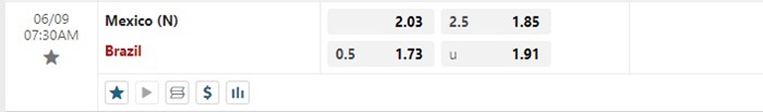 Bảng tỷ lệ kèo bóng đá trận đấu Mexico vs Brazil
