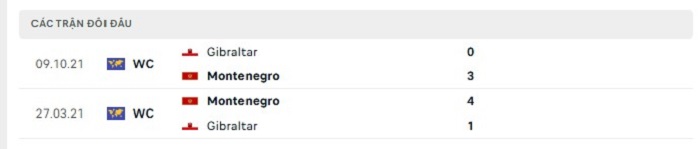 Lịch sử đối đầu của Montenegro vs Gibraltar
