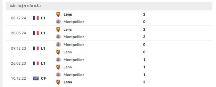 Thành tích trong quá khứ với Montpellier họ cũng từng gặp không ít những khó khăn trước RC Lens, cụ thể là 10 lần gặp nhau gần đây nhất giữa hai đội thì Montpellier chỉ thắng 2, hoà 3 và có tới 5 thất bại theo kèo châu Âu được niêm yết trước đối thủ. Mùa này RC Lens mới chỉ thua 1 vòng đấu trên sân khách trong khi với Montpellier họ nhận tới 12 thất bại theo mốc kèo châu Âu có thể thấy được sự trái chiều về mặt phong độ, do vậy mà việc RC Lens có được một chiến thắng ở chuyến làm khách cũng cũng là trong khả năng của họ.