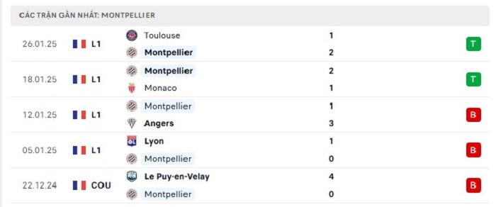 Bảng bóng đá trận đấu Montpellier vs RC Lens