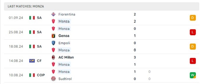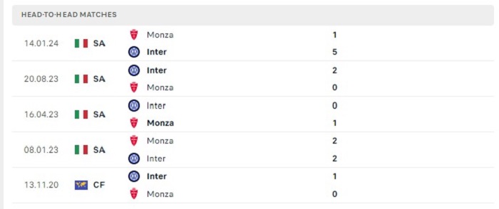 Trong cả 2 lần làm khách trên sân của Monza thì Inter Milan đều đã ghi được ít nhất 2 bàn thắng, cả 2 trận đấu đều có tỷ lệ ghi bàn từ 4 bàn trở lên. Monza cũng có những cơ hội để có được bàn thắng ghi cái duyên ghi bàn của họ vào lưới đối thủ này trong quá khứ vẫn khá ổn định. Trận đấu sắp tới giữa Monza và Inter Milan cũng vì vậy mà có thể đặt niềm tin vào một trận đấu bùng nổ về mặt tỷ số được ghi.