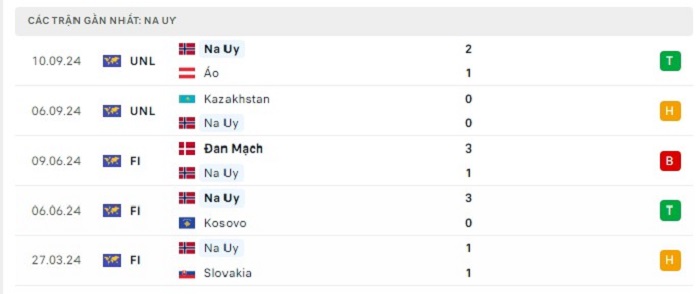 Phong độ gần đây Na Uy vs Slovenia