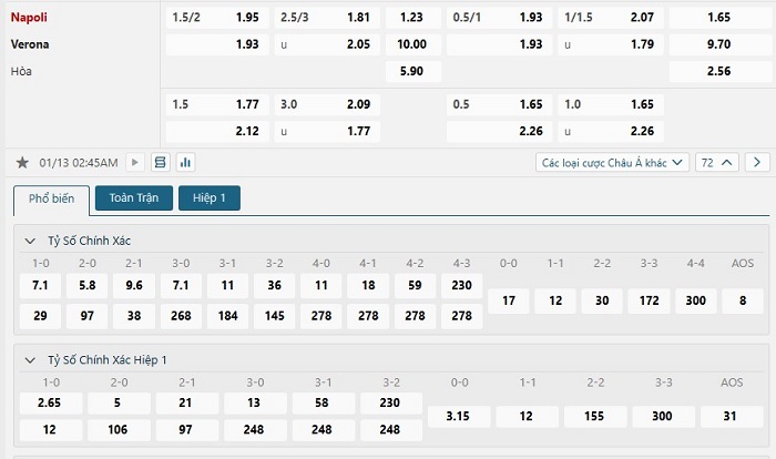Soi kèo châu Á, kèo chấp Napoli vs Hellas Verona