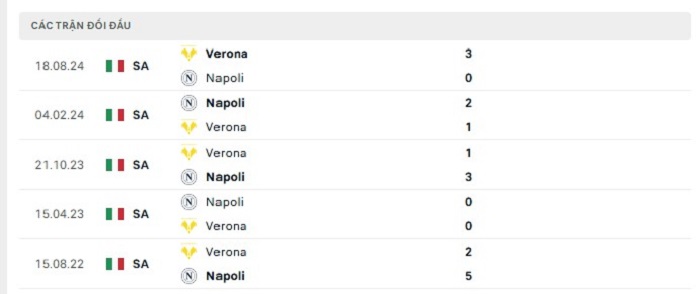Bảng bóng đá trận đấu Napoli vs Hellas Verona