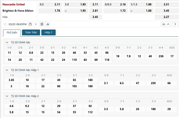 Thống kê có thể thấy được trong các trận đấu có sự góp mặt của Newcastle United và Brighton thời gian gần đây đang có được tỷ lệ ghi bàn tương đối cao, điều này thấy được lối chơi của hai đội thể hiện với hiệu suất ghi bàn đầy ấn tượng. Hàng công của cả Newcastle United và Brighton thời điểm hiện tại cũng đều đang thể hiện được khả năng ghi bàn tốt, chính vì vậy mà tỷ số trận đấu sắp tới đây của hai đội hoàn toàn có thể xuất hiện nhiều trong trận.