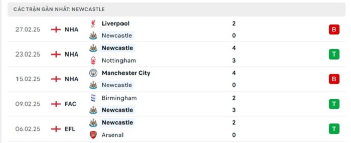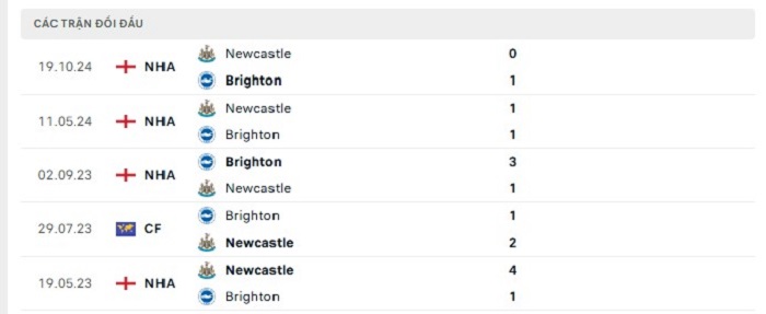 Bảng  bóng đá trận đấu Newcastle United vs Brighton