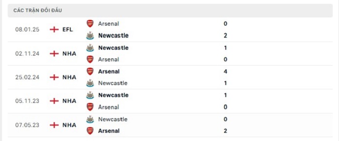 Bảng bóng đá trận đấu Newcastle vs Arsenal