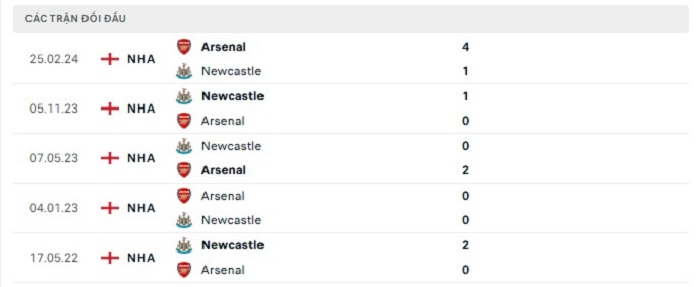 Bảng bóng đá trận đấu Newcastle vs Arsenal