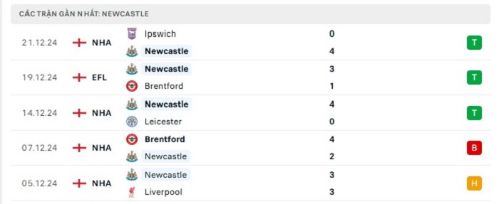 - Phong độ Newcastle