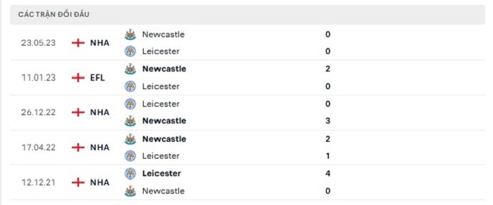 Bảng bóng đá trận đấu Newcastle vs Leicester City