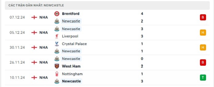 - Phong độ Newcastle