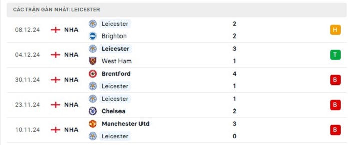 - Phong độ Leicester City
