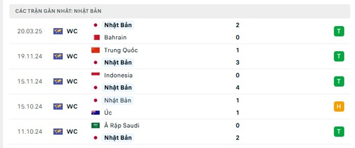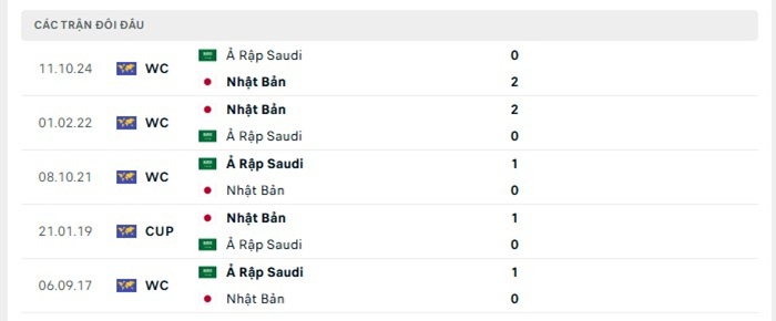Phong độ gần đây Nhật Bản vs Saudi Arabia