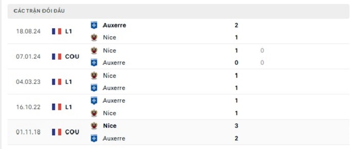 Bảng  bóng đá trận đấu Nice vs Auxerre