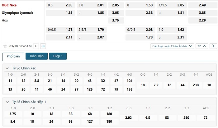 Soi kèo châu Á, kèo chấp Nice vs Lyon