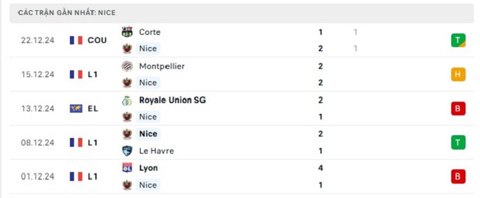 Bảng  bóng đá trận đấu Nice vs Stade Rennais