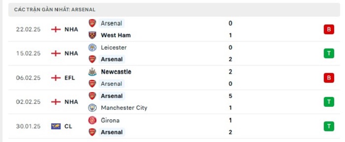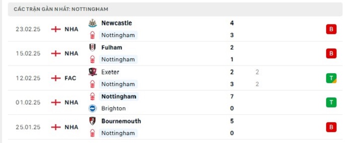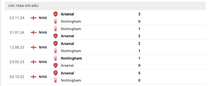 Bảng  bóng đá trận đấu Nottingham vs Arsenal
