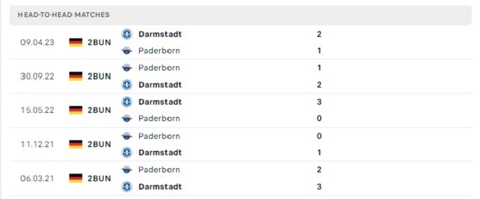 Lịch sử đối đầu của Paderborn vs Darmstadt 98